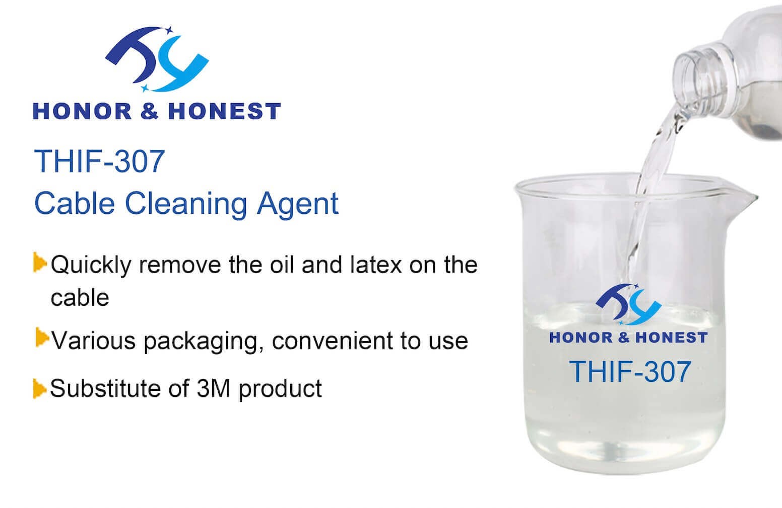 This product is a colorless oil with a mild fragrance. It can quickly remove all kinds of oil, wax, insulating paint and latex on the cable ends. After cleaning, the cable will not lose conductivity or signal.