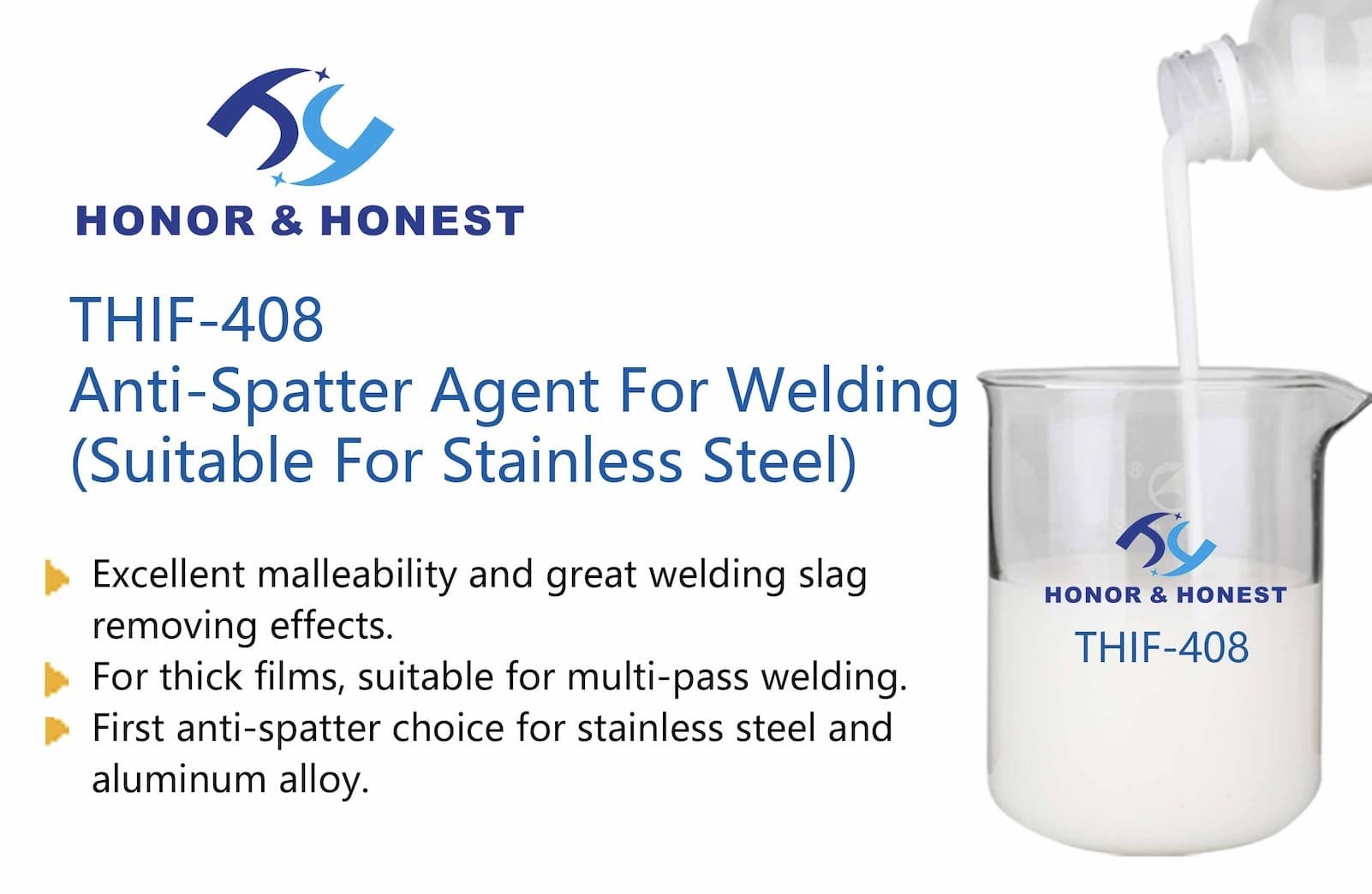 This product is an anti-spatter agent developed for welding slag splash. After spraying this product on the surface of the weldment, a layer of emulsified film is formed on the welding surface. The film is thin and has no leaks. It has excellent spreadability and isolates the welding slag and the welding surface. The slag removal operation is simple and thorough. This anti-spatter agent improves the appearance and quality of the weldment, while also keeps the surface of the weldment smooth and clean.